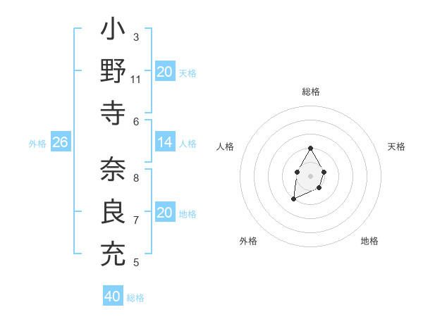 小野寺 奈良充さんを姓名の画数から五運を鑑定