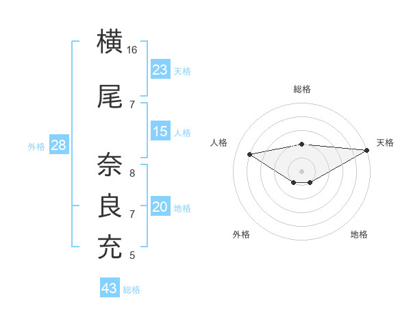 横尾 奈良充さんを姓名の画数から五運を鑑定