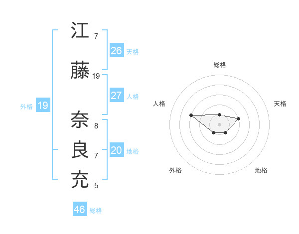 江藤 奈良充さんを姓名の画数から五運を鑑定