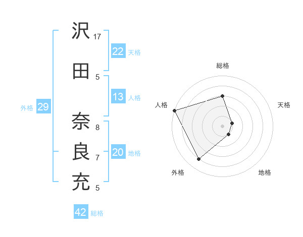 沢田 奈良充さんを姓名の画数から五運を鑑定
