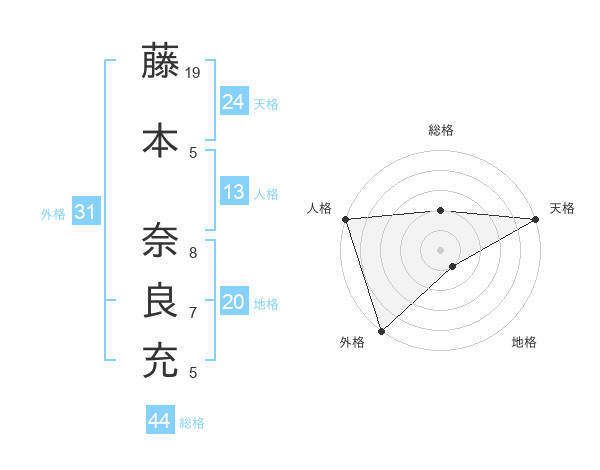 藤本 奈良充さんを姓名の画数から五運を鑑定