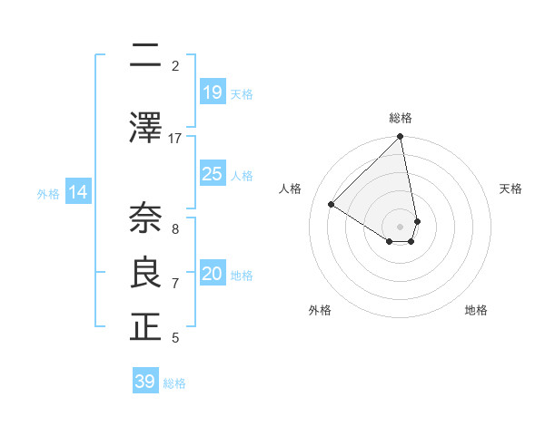 二澤 奈良正さんの総格は39画の5点!