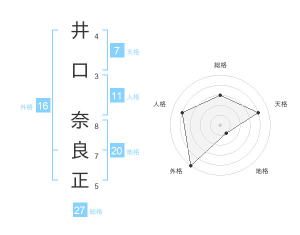 井口 奈良正さんの総格は27画の3点!