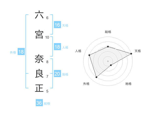 六宮 奈良正さんを姓名の画数から五運を鑑定