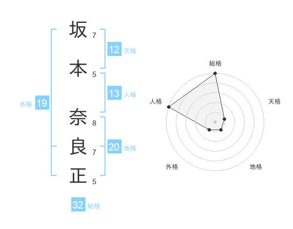 坂本 奈良正さんを姓名の画数から五運を鑑定
