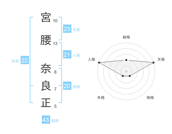 宮腰 奈良正さんを姓名の画数から五運を鑑定