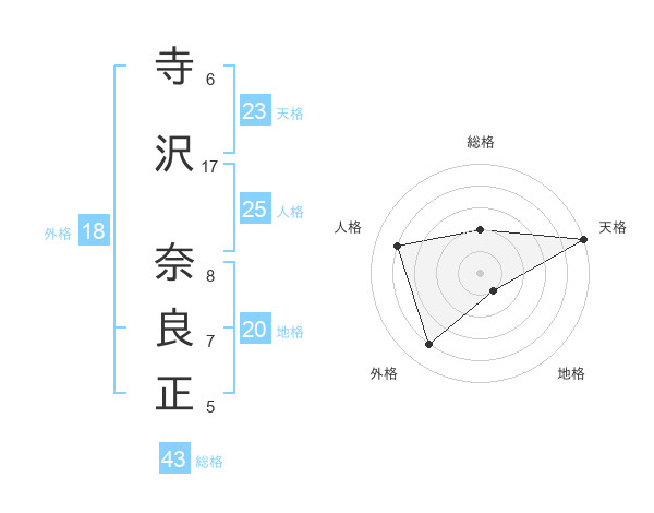 寺沢 奈良正さんを姓名の画数から五運を鑑定