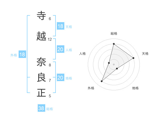 寺越 奈良正さんの総格は38画の4点!