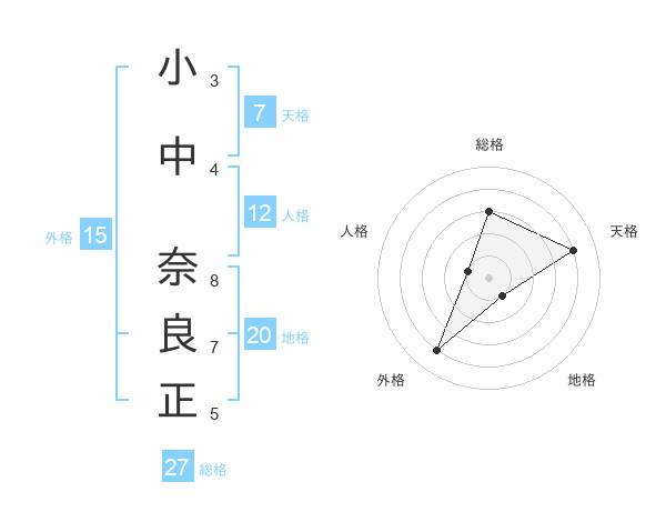 小中 奈良正さんの総格は27画の3点!