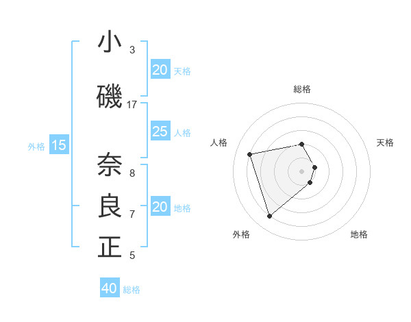 小磯 奈良正さんの総格は40画の2点!