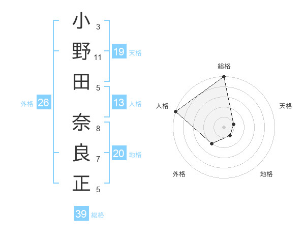 小野田 奈良正さんの総格は39画の5点!