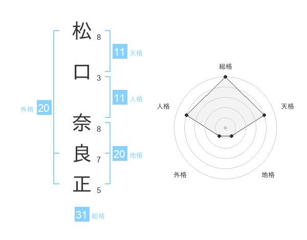 松口 奈良正さんを姓名の画数から五運を鑑定