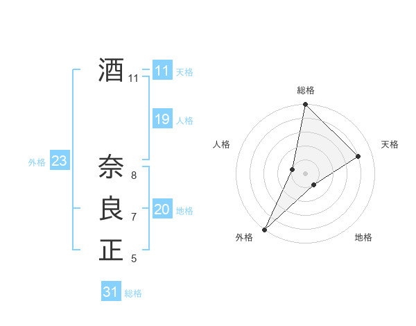 酒 奈良正さんの総格は31画の5点!