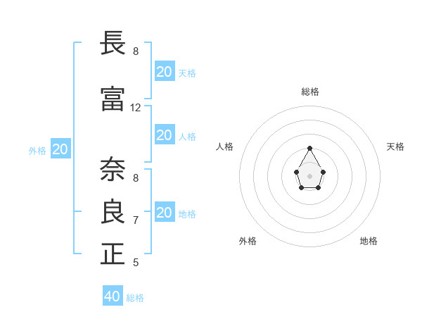 長富 奈良正さんの総格は40画の2点!