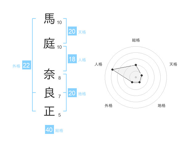 馬庭 奈良正さんの総格は40画の2点!