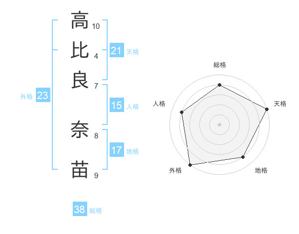 高比良 奈苗さんの天格は21画の5点!