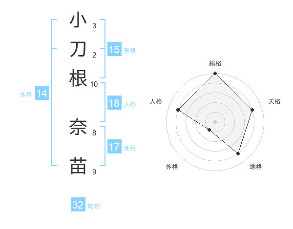 小刀根 奈苗さんを姓名の画数から五運を鑑定