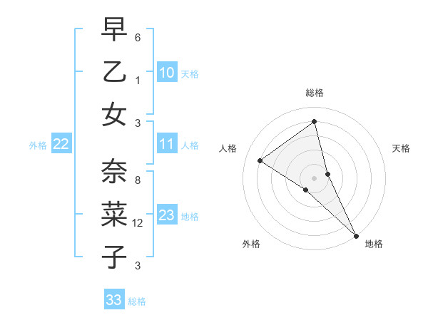 早乙女 奈菜子さんの総格は33画の4点!