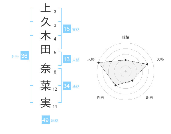 上久木田 奈菜実さんを姓名の画数から五運を鑑定