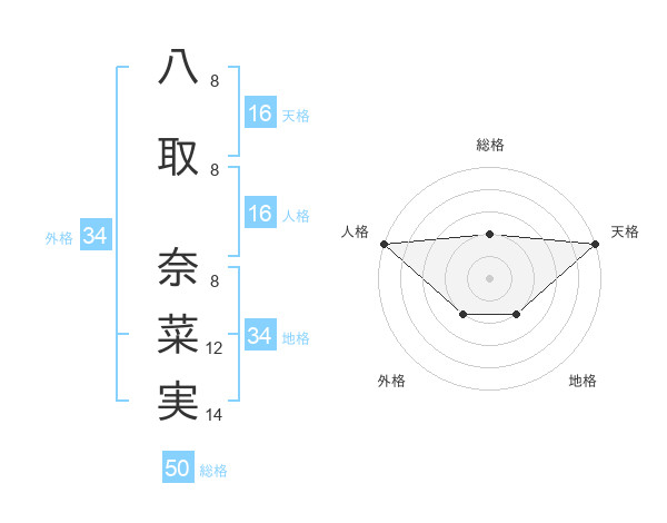 八取 奈菜実さんの総格は50画の2点!