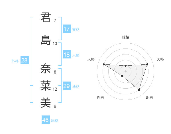 君島 奈菜美さんを姓名の画数から五運を鑑定