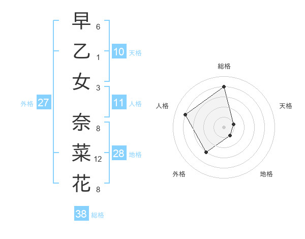 早乙女 奈菜花さんを姓名の画数から五運を鑑定