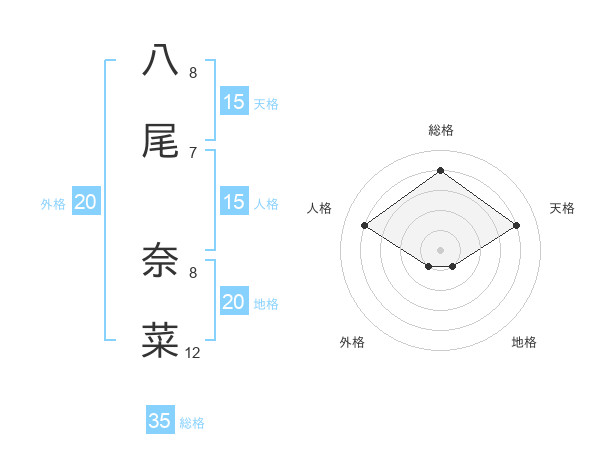八尾 奈菜さんを姓名の画数から五運を鑑定