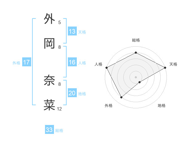 外岡 奈菜さんの天格は13画の5点!