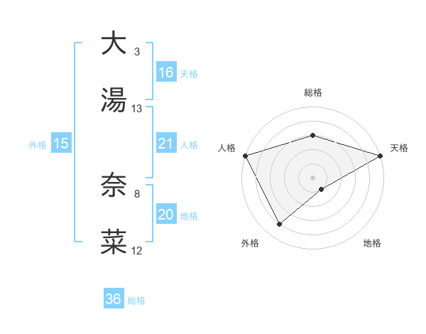 大湯 奈菜さんの天格は16画の5点!