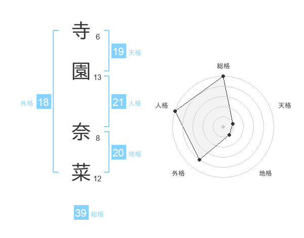 寺園 奈菜さんを姓名の画数から五運を鑑定