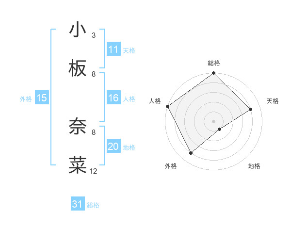 小板 奈菜さんの総格は31画の5点!