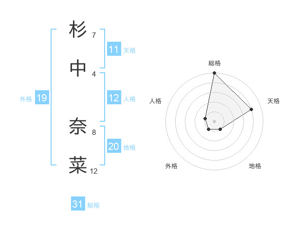 杉中 奈菜さんを姓名の画数から五運を鑑定