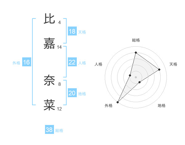 比嘉 奈菜さんの天格は18画の4点!