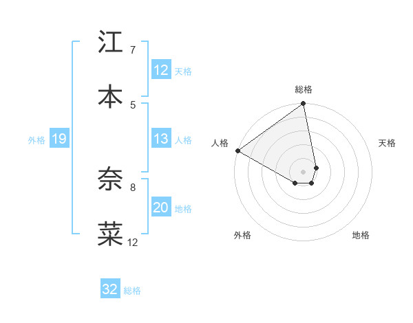 江本 奈菜さんの総格は32画の5点!