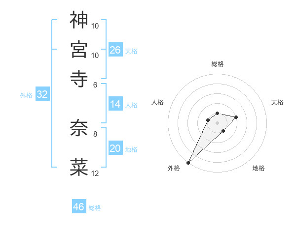 神宮寺 奈菜さんの地格は20画の1点!