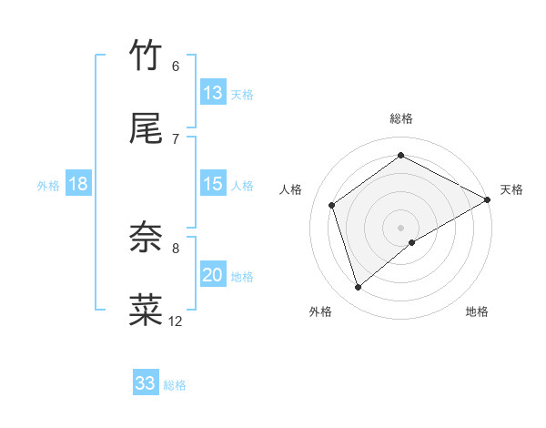 竹尾 奈菜さんの総格は33画の4点!