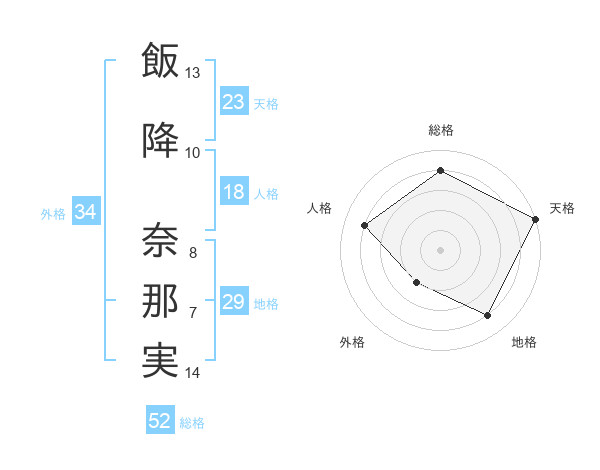 飯降 奈那実さんを姓名の画数から五運を鑑定