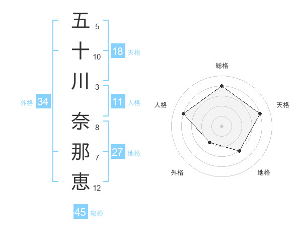 五十川 奈那恵さんを姓名の画数から五運を鑑定