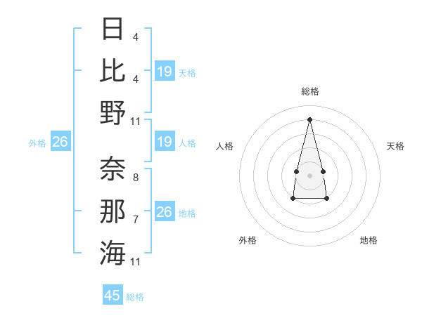 日比野 奈那海さんの総格は45画の4点!