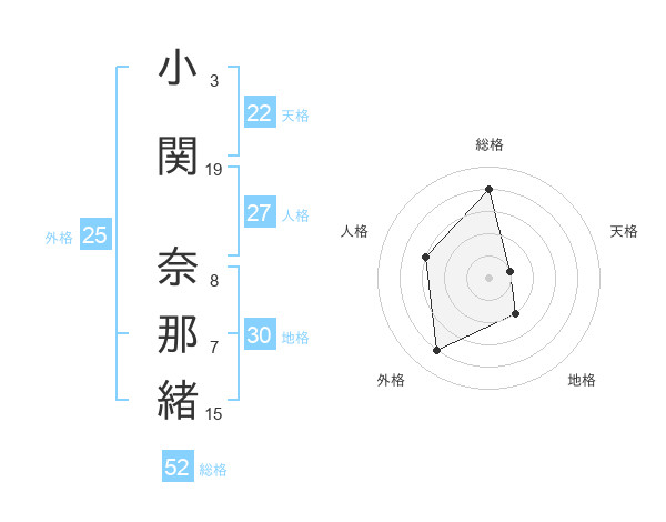小関 奈那緒さんを姓名の画数から五運を鑑定