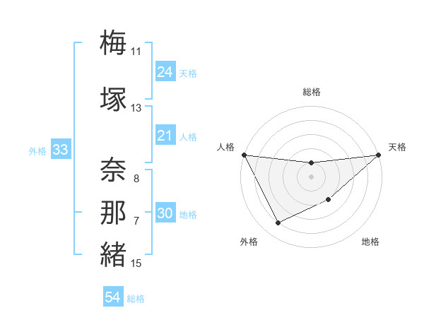 梅塚 奈那緒さんを姓名の画数から五運を鑑定