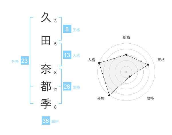 久田 奈都季さんを姓名の画数から五運を鑑定