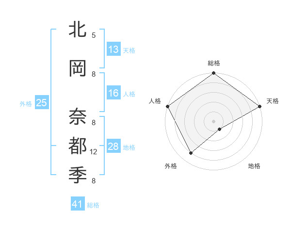 北岡 奈都季さんを姓名の画数から五運を鑑定