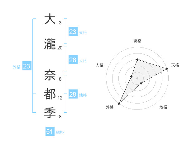 大瀧 奈都季さんを姓名の画数から五運を鑑定