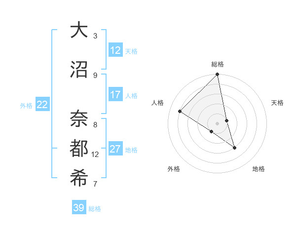 大沼 奈都希さんを姓名の画数から五運を鑑定