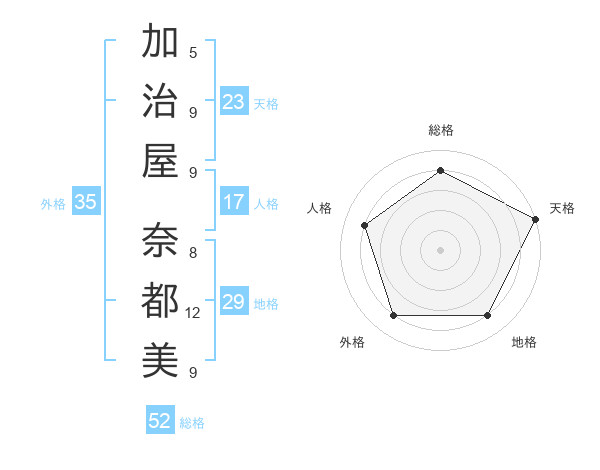 加治屋 奈都美さんを姓名の画数から五運を鑑定