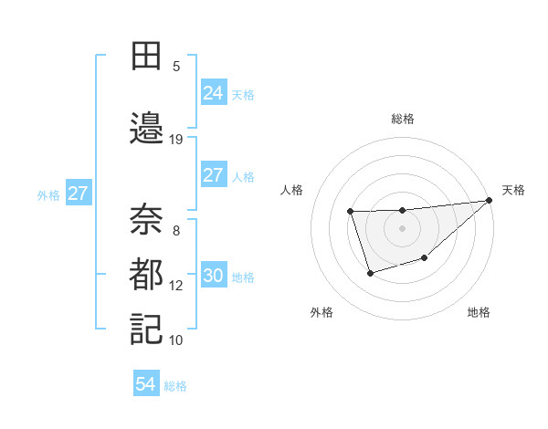 田邉 奈都記さんを姓名の画数から五運を鑑定