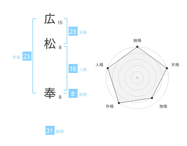 広松 奉さんの総格は31画の5点!