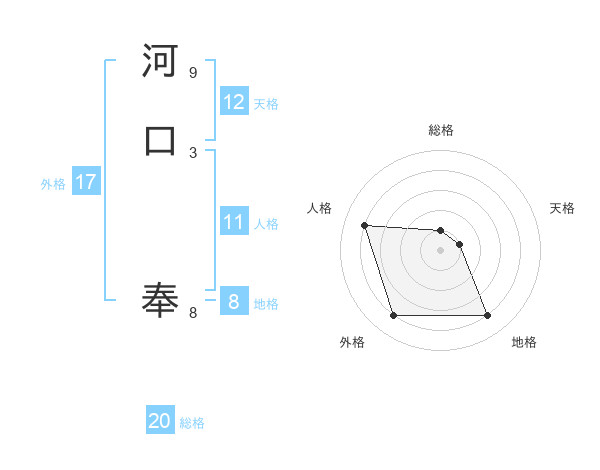 河口 奉さんの総格は20画の1点!