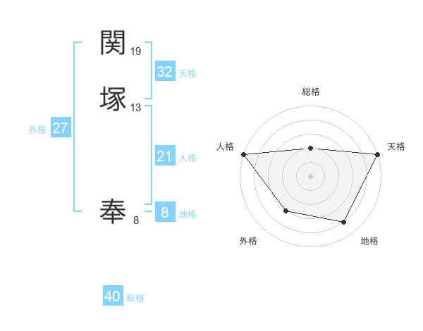関塚 奉さんの総格は40画の2点!